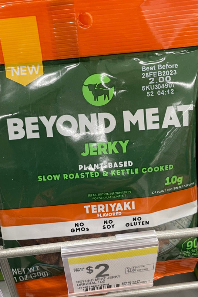 https://www.beyondmeat.com/en-US/press/beyond-meat-and-pepsico-s-planet-partnership-debuts-beyond-meat-jerky-the-joint-venture-s-first-product-at-retailers-nationwideBeyond Meat Jerkyはオリジナル、ホット&スパイシー、テリヤキの3つのフレーバーで展開されていますが、私がシリコンバレー滞在中に、たまたま入ったドラッグストアに並んでいたのはオリジナルとテリヤキ風味のものでした。Beyond Meat Jerkyには、1食分あたり10gのタンパク質が含まれています。コレステロールは含まれていません。原材料はエンドウ豆や緑豆などで、GMO、大豆、グルテンは含まれていません。気になる味の方ですが、個人的には味付けや食感など、まだまだ改良の余地があるかなと感じました。次のバージョンを期待したいです。価格ですが、小さなパッケージは2ドルで、手頃な値段設定も手伝って、米国では徐々に人気が出てきているようです。